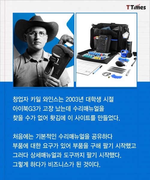 IT 신제품이 나올 때마다 낱낱이 분해해 많은 매체들이 인용하는 사이트 아이픽스잇(iFixit). IT 마니아들의 사이트 같은데 이 회사의 지난해 매출만 2,100만달러(237억원). 과연 이 사이트는 어떻게 돈을 버는 것일까?