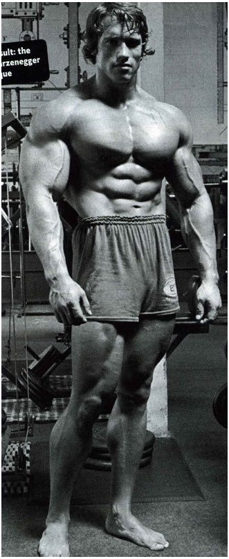 사진에서 볼 수 있는 아놀드 슈워제네거는 미스터 올림피아 7연승에 빛나는 레전드 보디빌더다.