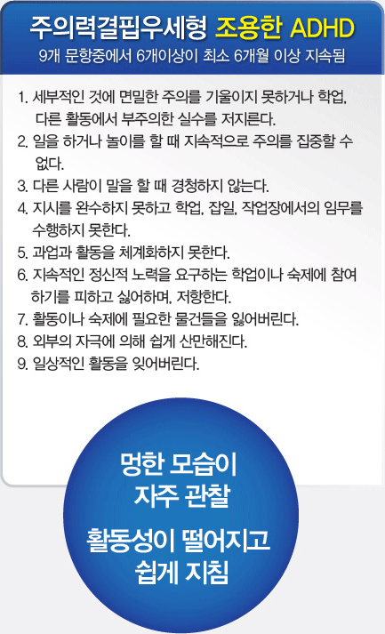 주의가 산만하고 노력하기를 싫어한다면 가까운 신경정신과를 방문하도록.
