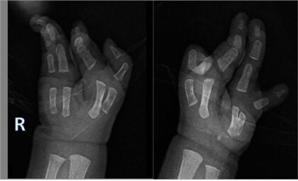 (손이 갈고리처럼 두세개의 손가락밖에 없는 증상)