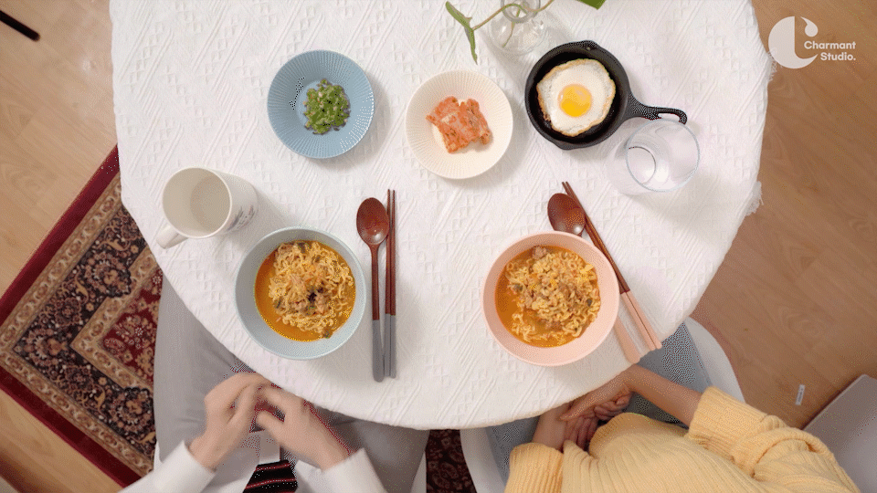 <찐라면 먹고 갈래>는 경기콘텐츠진흥원의 제작지원을 받아 제작되었다. 앞으로 K-푸드와 관련된 소재를 활용해 영상 콘텐츠를 만들고 향후 다양한 사업화를 목표로 하기 위함이다. 프로젝트의 목적과 기획의도에 따라 타겟층과 소재, 키워드를 선정하였고, 음식과 관련된 다양한 영상 레퍼런스를 조사하고 분석했다. 단편적인 작업에서 머무르지 않고 시리즈가 확장성을 고려해 주제를 세웠다.