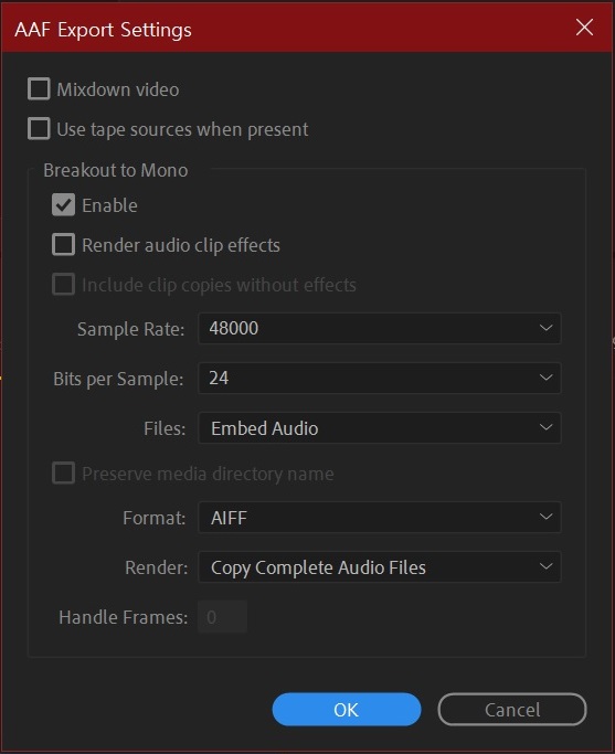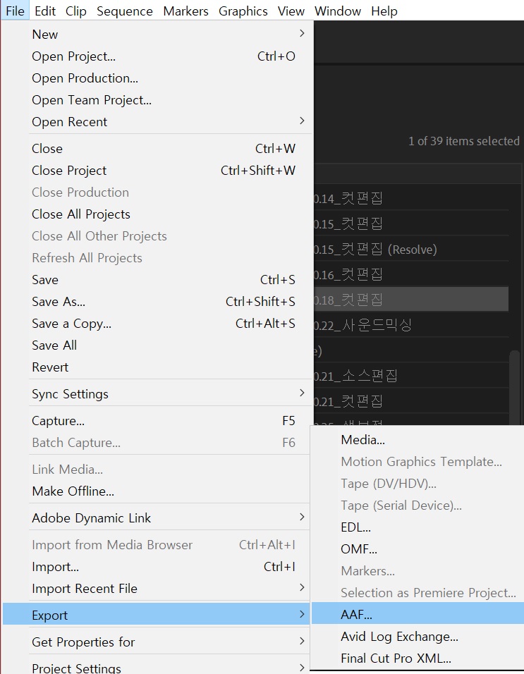 사운드 믹싱을 위한 AAF 출력하기