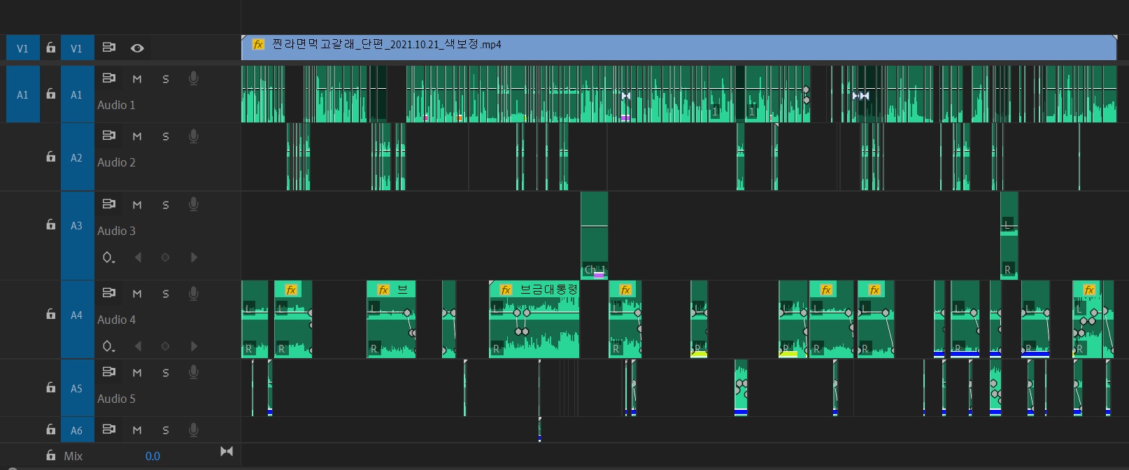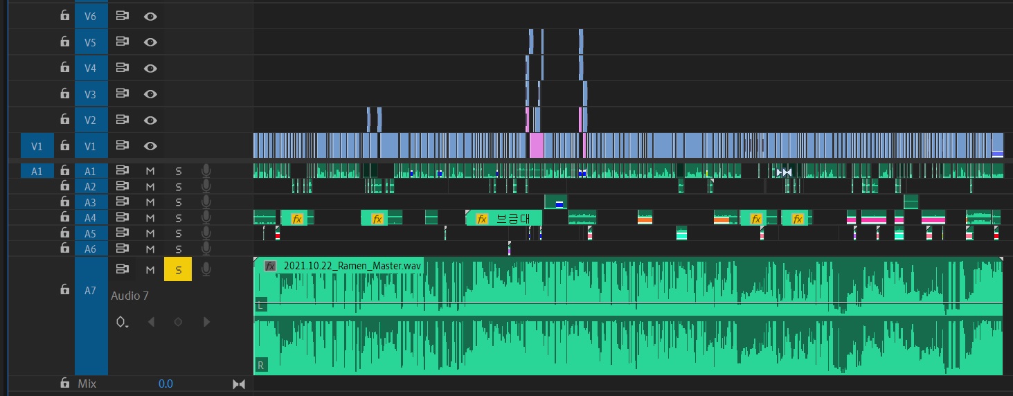 싱크 작업을 마친 후 빠르게 가편집을 진행했다. 가편집 단계에서는 추가 촬영이 필요한 부분을 체크하고, 후시녹음이 들어갈 부분을 러프하게 편집한다.