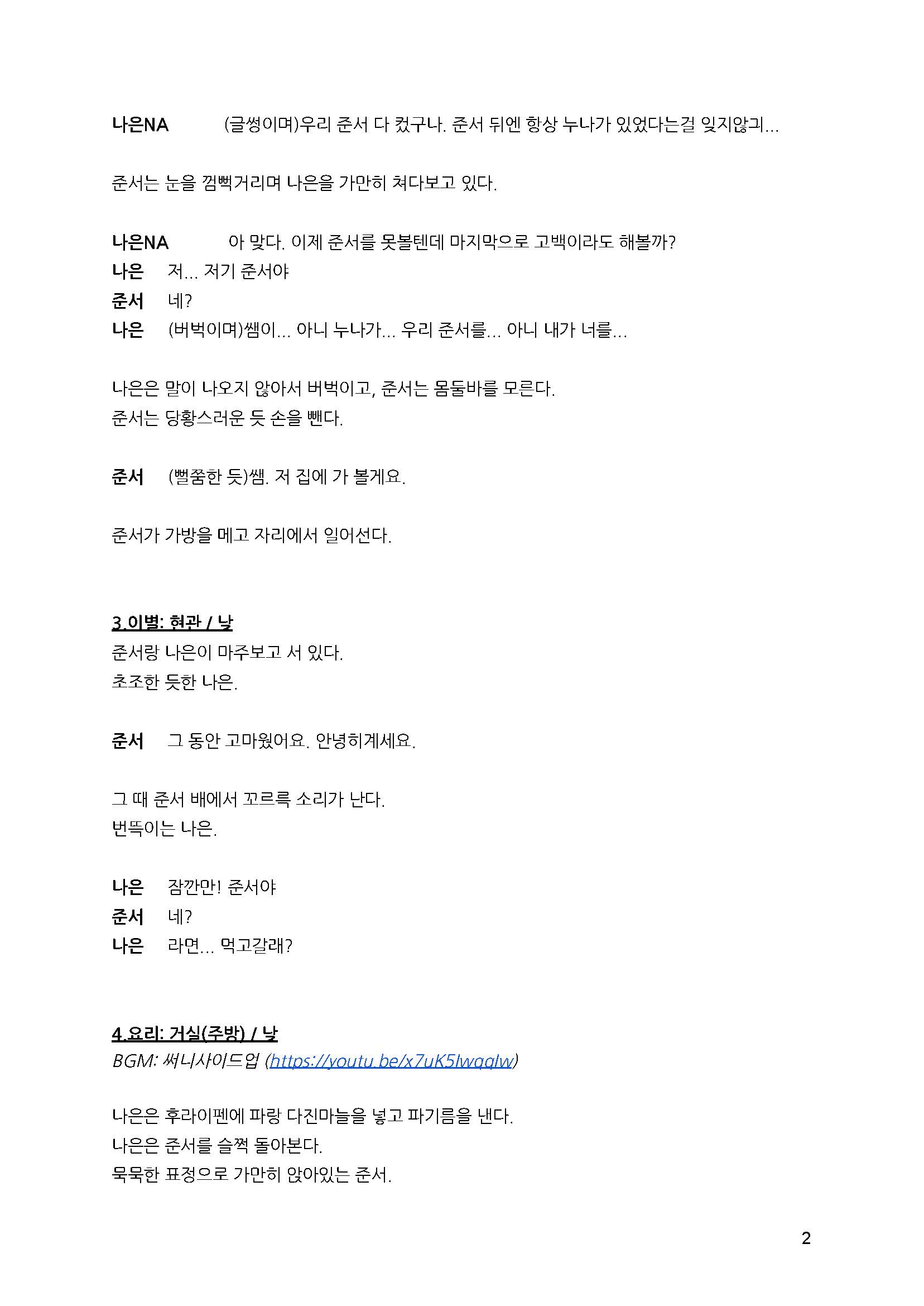 *시나리오: 논문에서는 시나리오의 초고부터 수정된 과정들까지 상세히 다룰 예정이다.