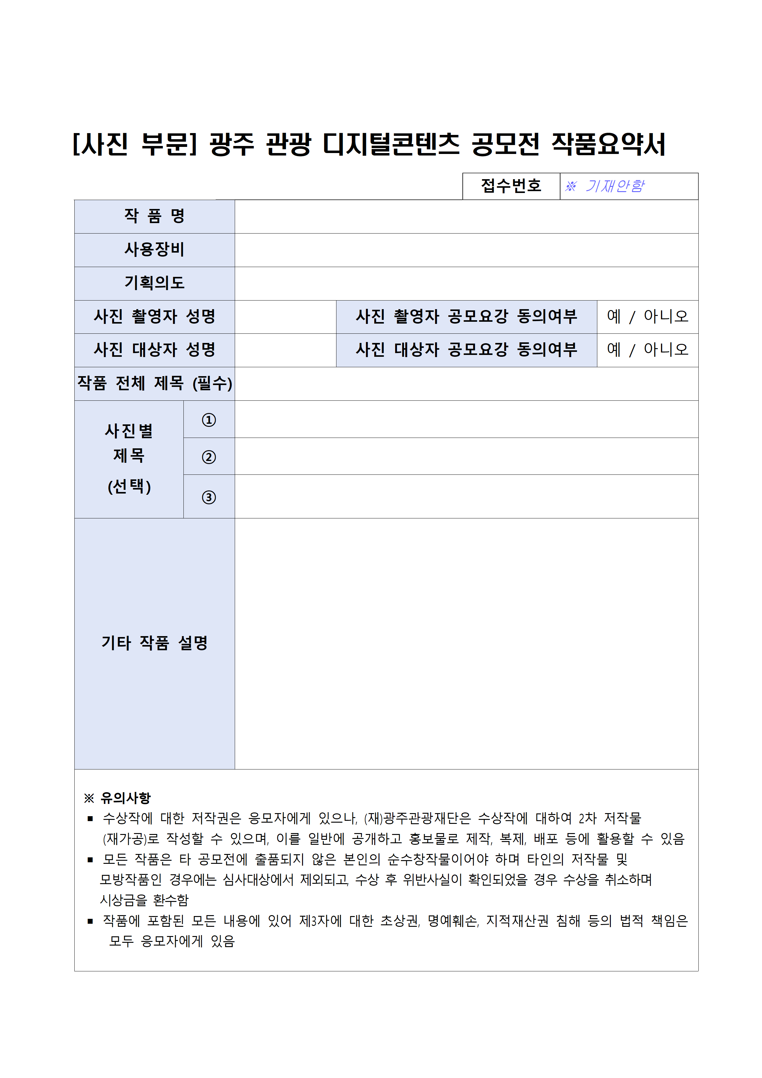 ※ 메일 제목 : 광주관광디지털콘텐츠공모전_사진_제목_출품자성명