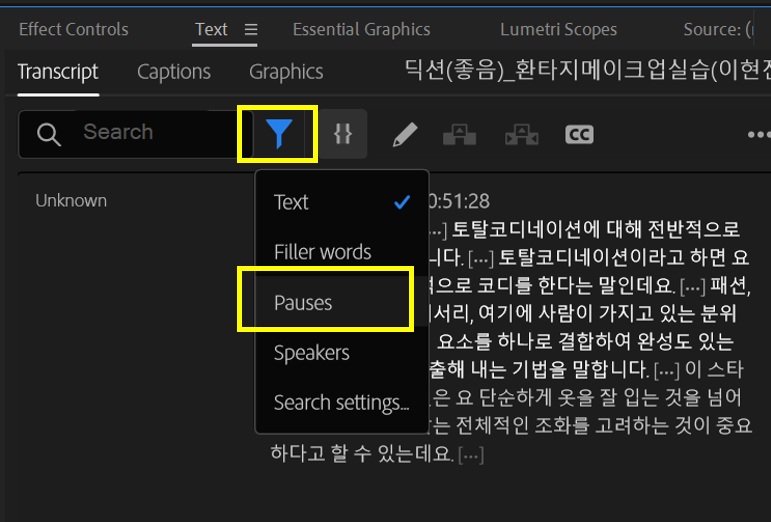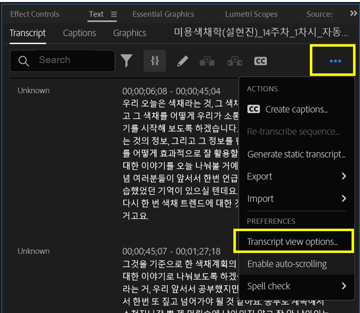 Transcript – ㆍㆍㆍ (메뉴) – Transcript view option