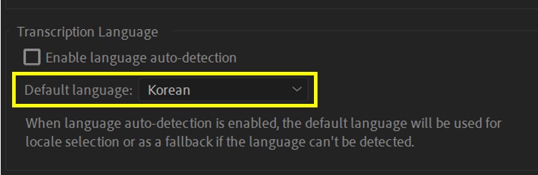 Edit – Preferences – Transcription : 언어를 Korea로 설정